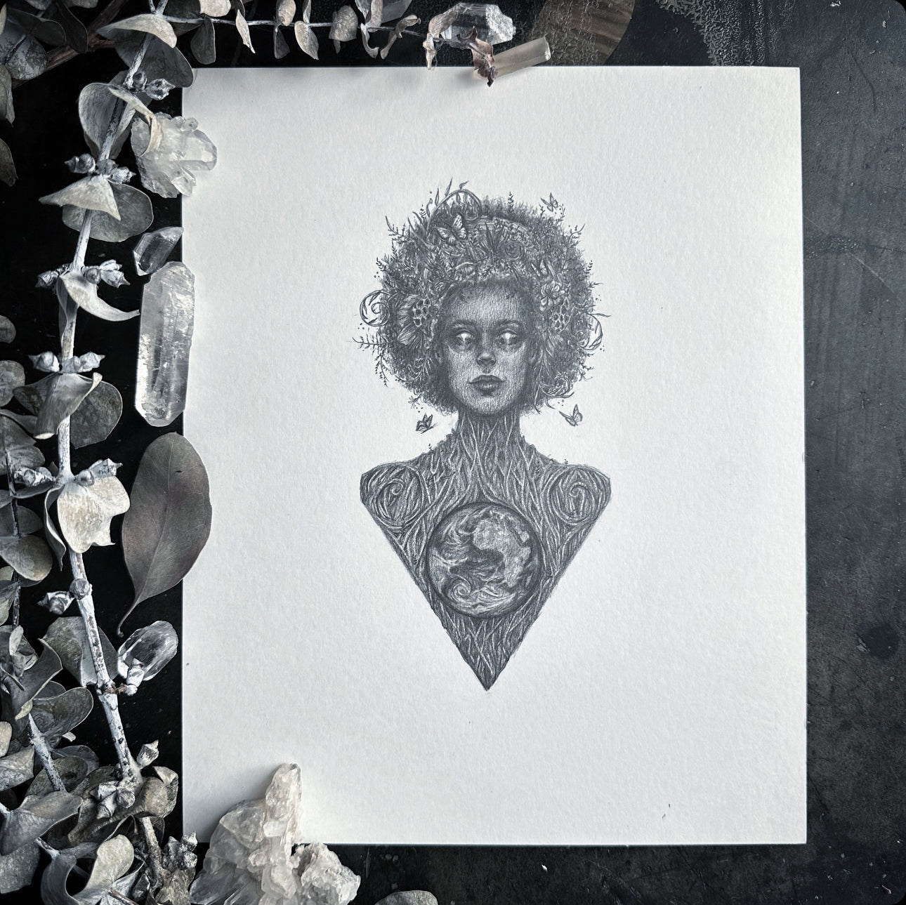 Original 8x10” graphite drawing on high quality watercolor paper by Caitlin McCarthy. Hand signed by the artist.