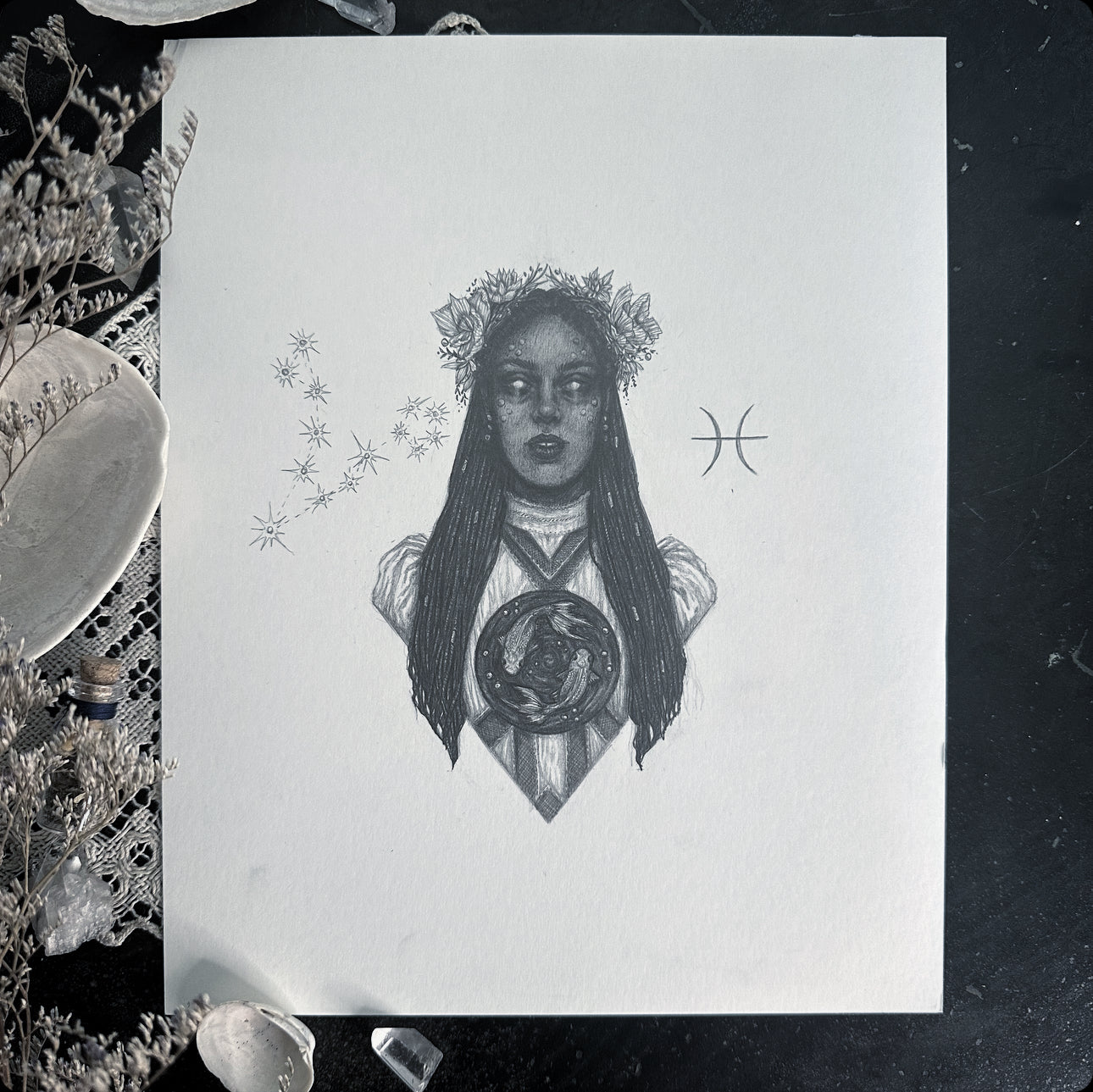 Pisces Zodiac Goddess - Original Drawing by Caitlin McCarthy
